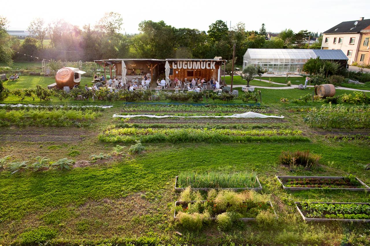Am Gugumuck-Hof in Rothneusiedl entstehen Lebensmittel dort, wo sie später serviert werden. Gemüse, Kräuter, Schnecken und Fisch wachsen rund um die Gartenbar – im Rhythmus der Jahreszeiten und nach regenerativen Prinzipien.